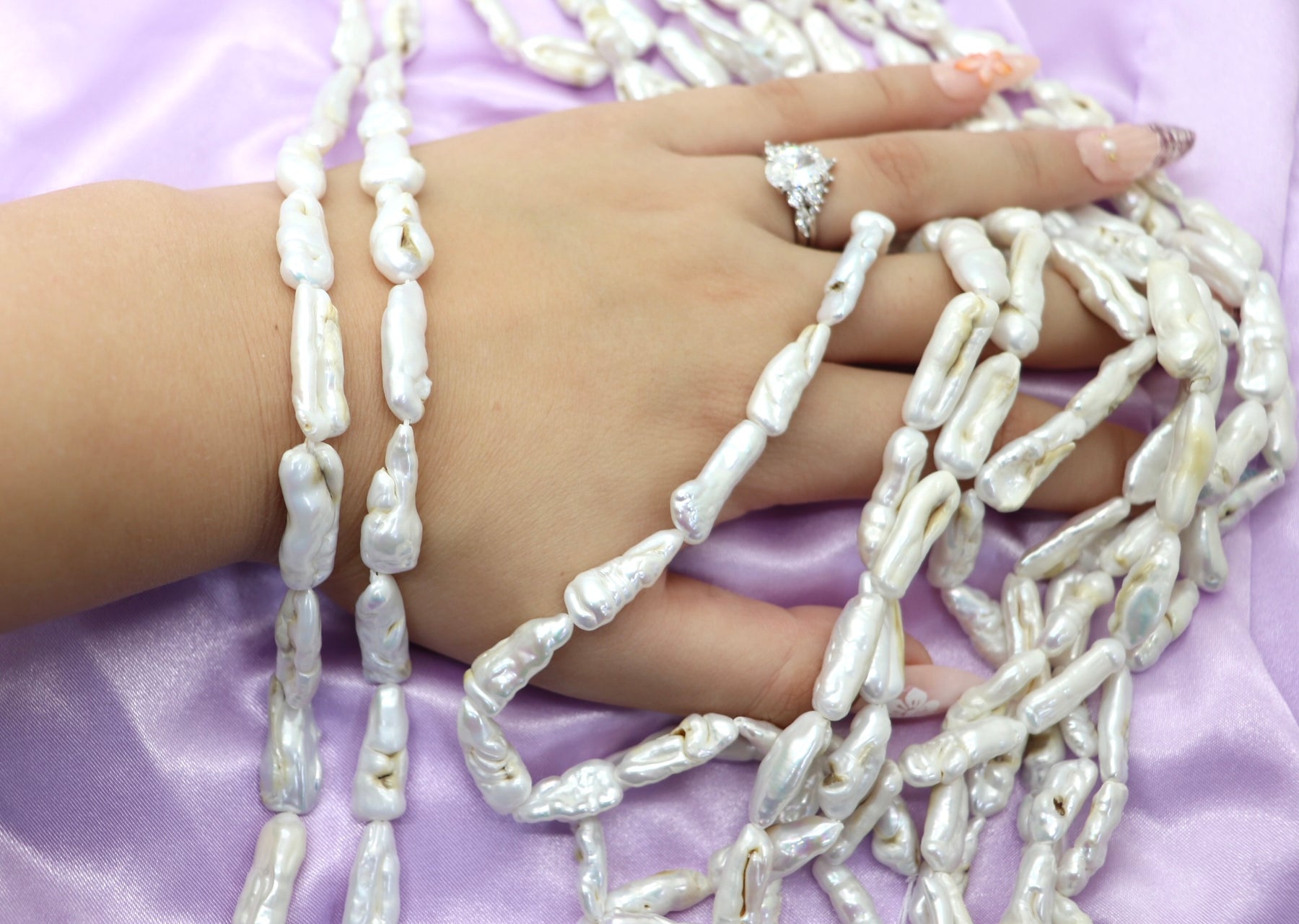 Discover the elegance of skinny biwa pearls, a versatile choice for creating refined necklaces and bracelets with natural sophistication.