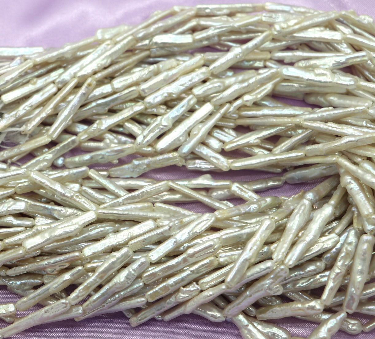 Discover the elegance of skinny biwa pearls, a versatile choice for creating refined necklaces and bracelets with natural sophistication.