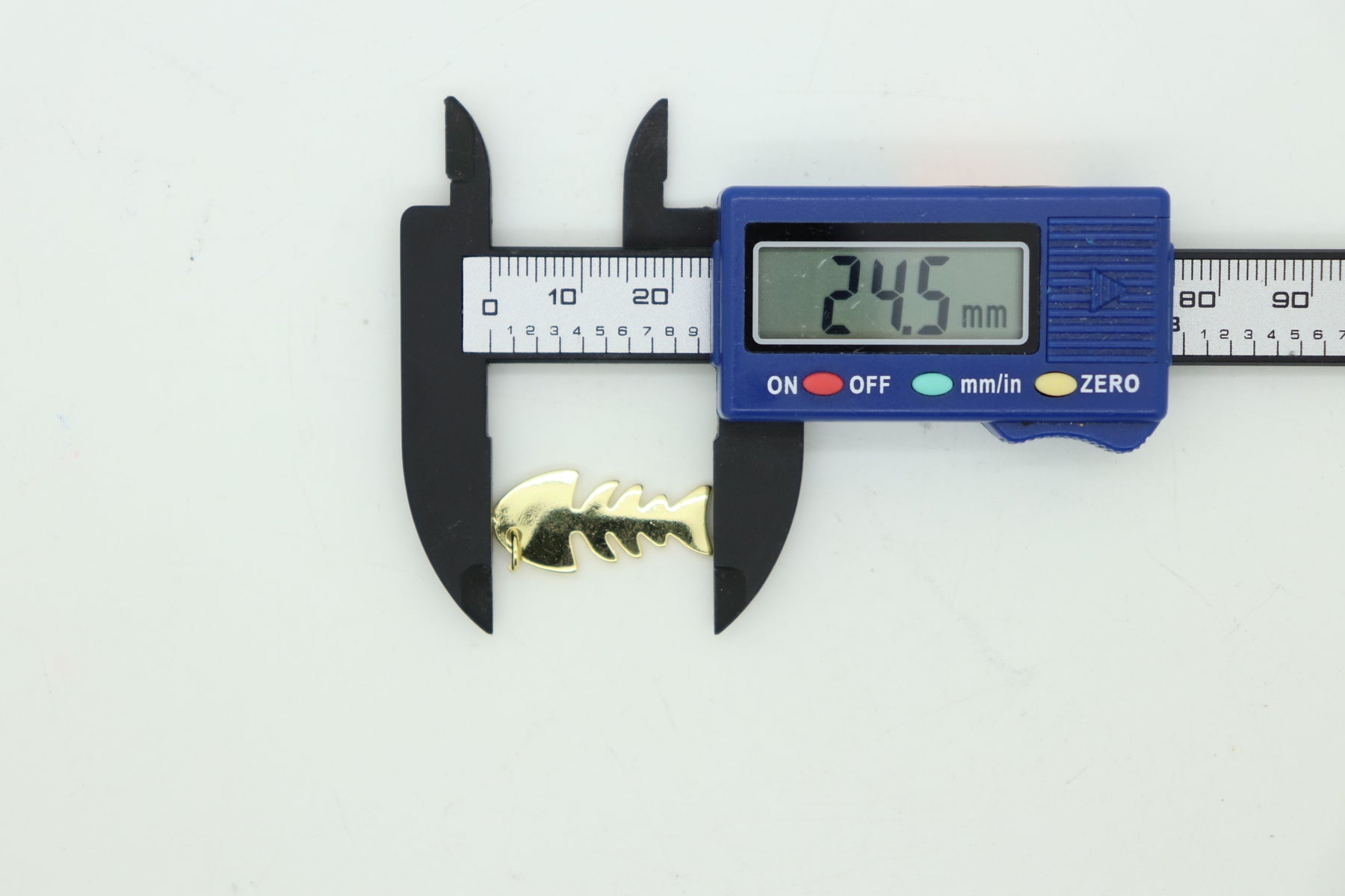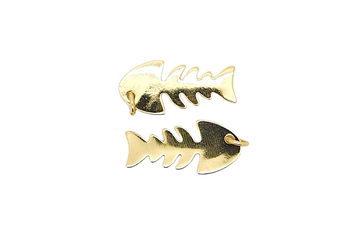 Inspired by ocean treasures, our large skeleton fish charm adds a touch of elegance to any outfit. Plated in 18kt gold on brass metal, it exudes luxury and sophistication.