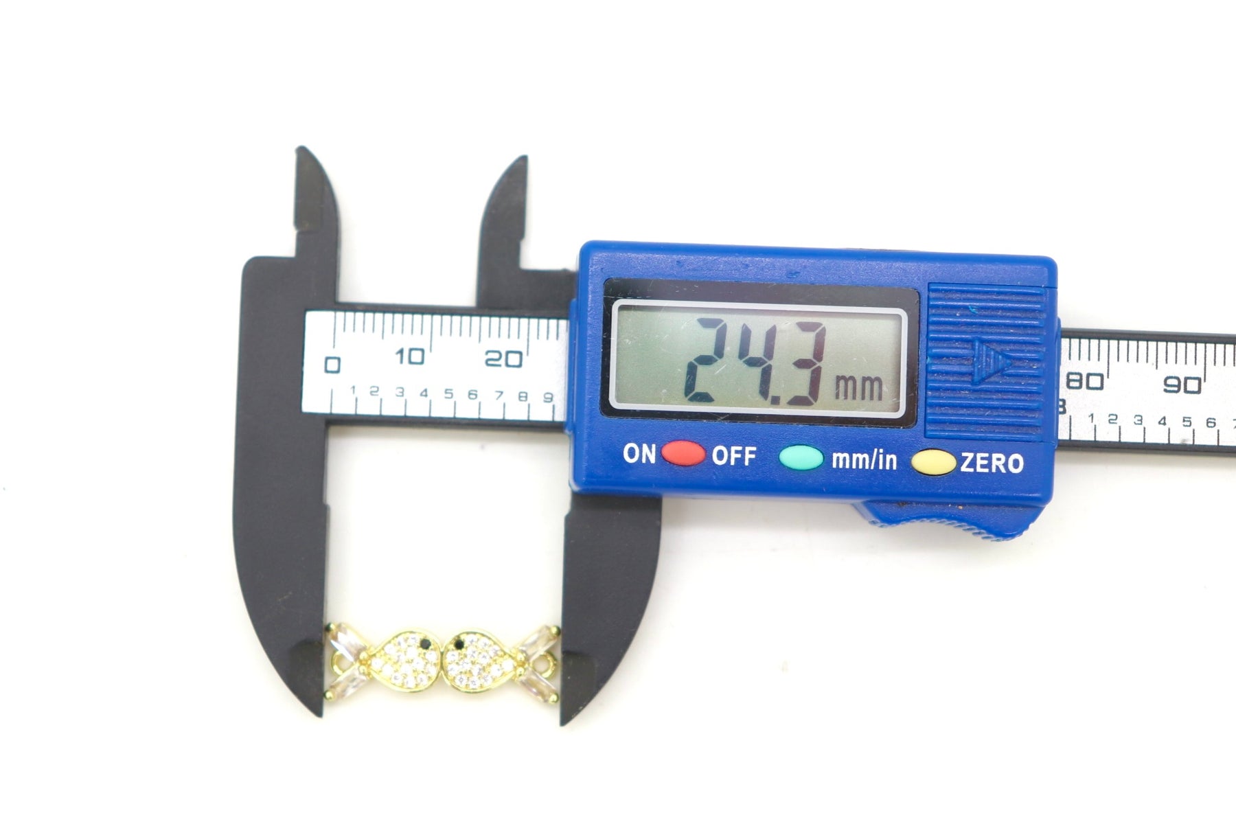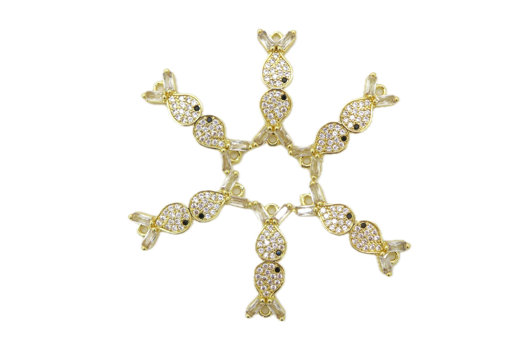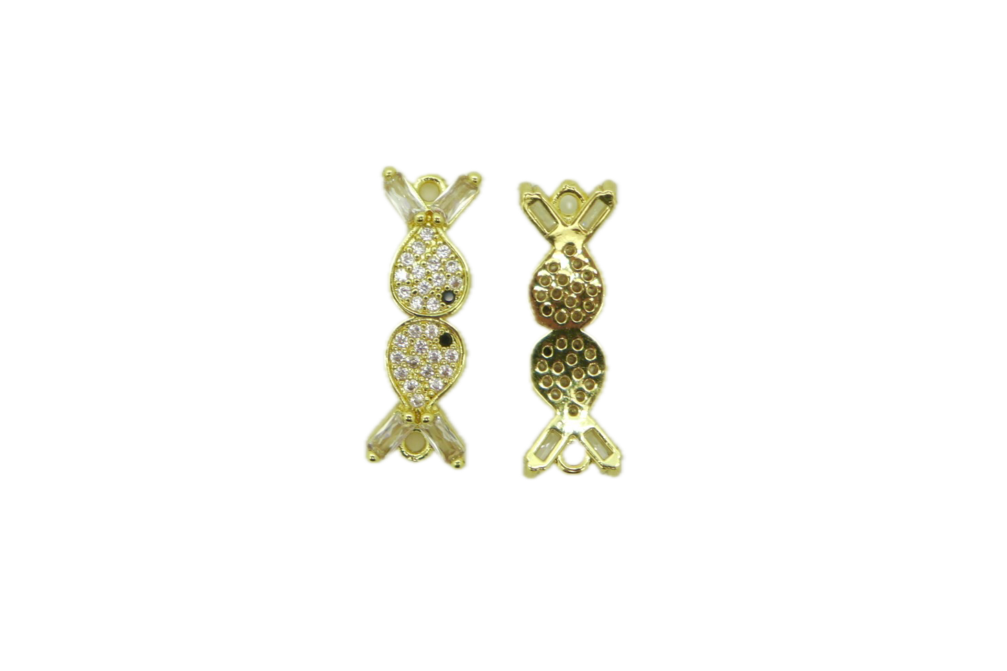 Inspired by ocean treasures, our fish connector adds a touch of elegance to any outfit. Plated in 18kt gold on brass metal, it exudes luxury and sophistication.