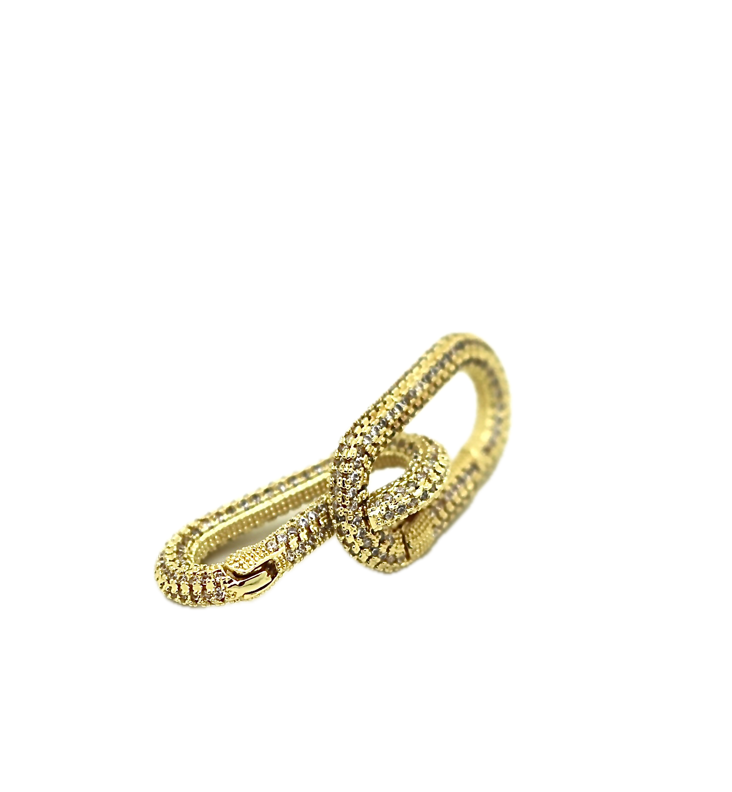 The Carabiner Lock Clasp features a sleek, metallic design encrusted with tiny zirconia crystals sparkling pave stones. It's durable, secure, and perfect for necklaces, bracelets, and keychains. This clasp adds both functionality and a touch of elegance to your designs.