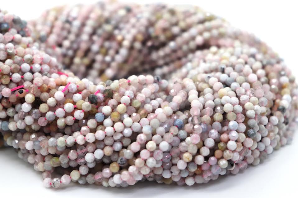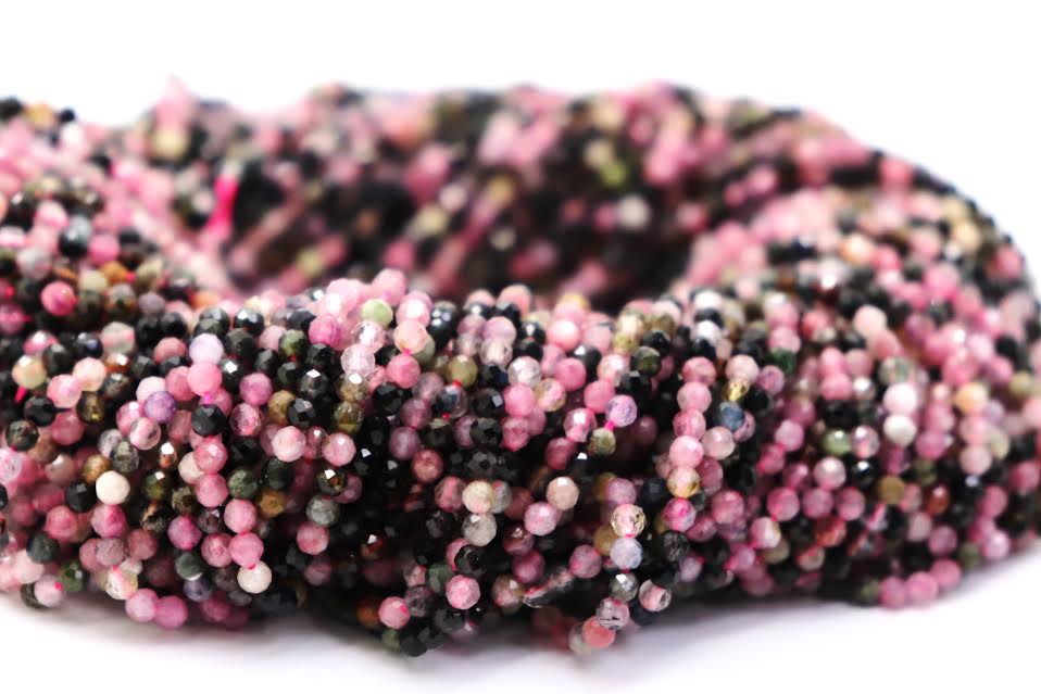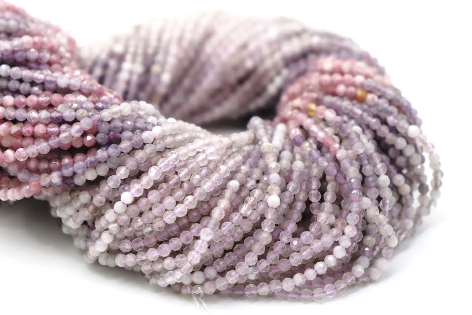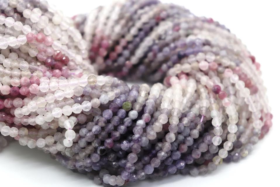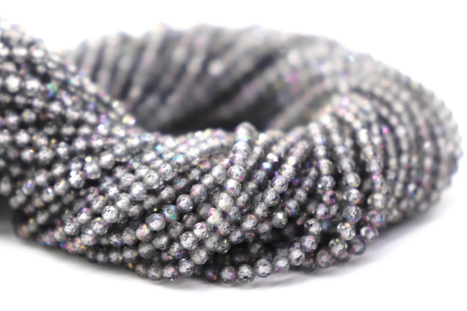 Micro-faceted beads are small beads cut with numerous tiny facets that enhance their ability to reflect light, creating a sparkling effect.