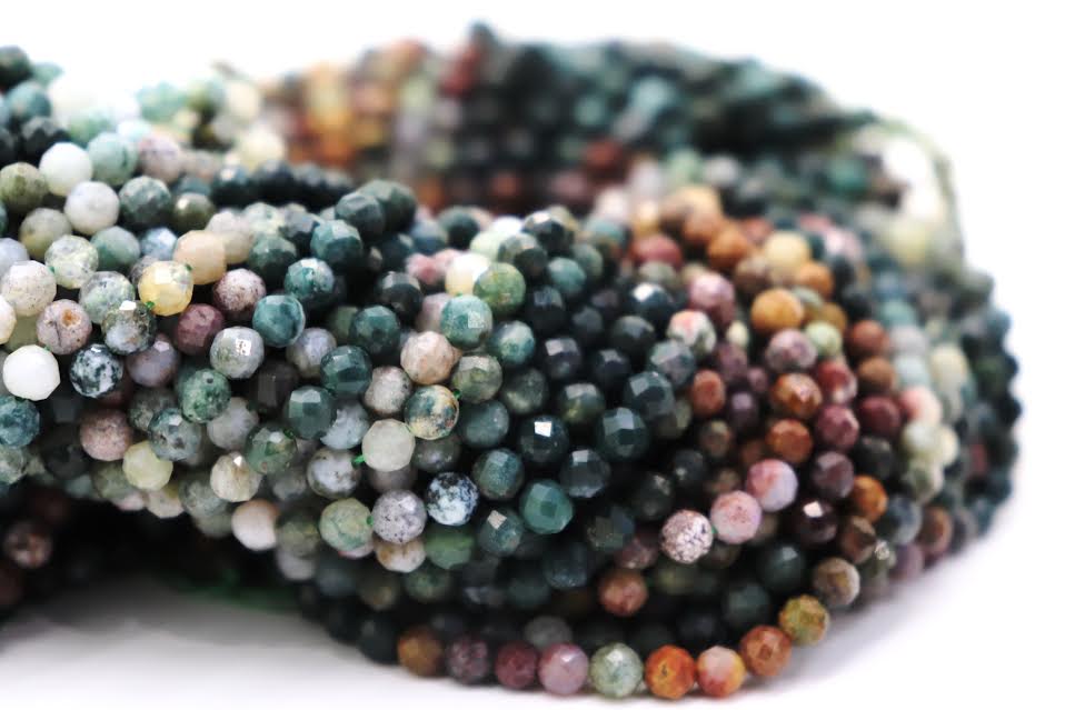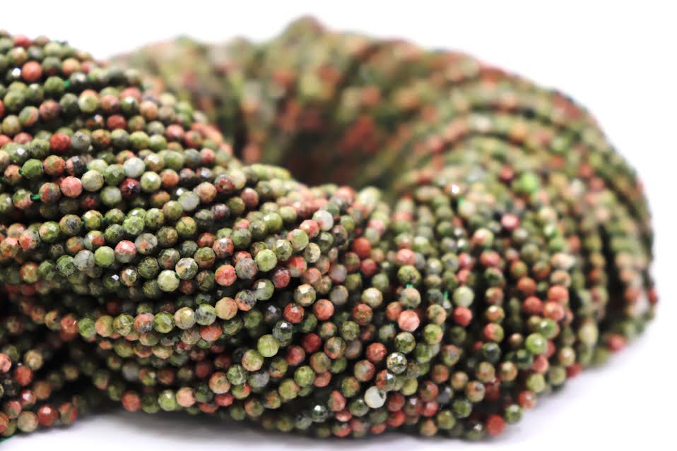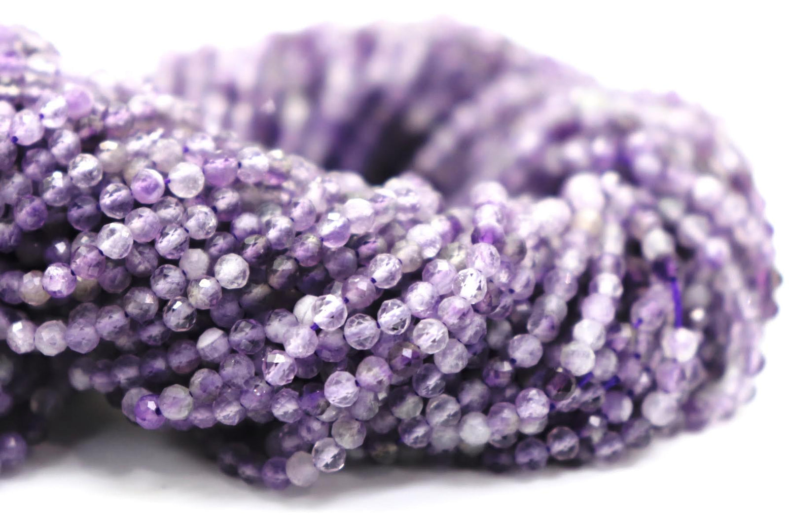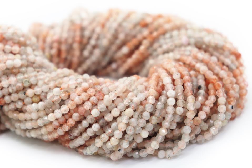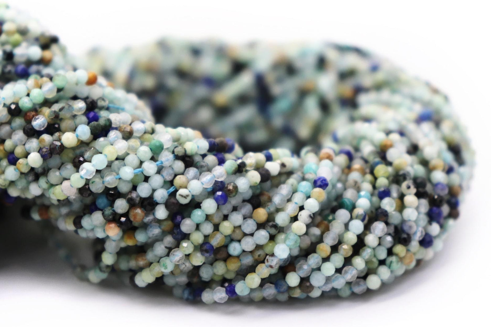 Micro-faceted beads are small beads cut with numerous tiny facets that enhance their ability to reflect light, creating a sparkling effect.