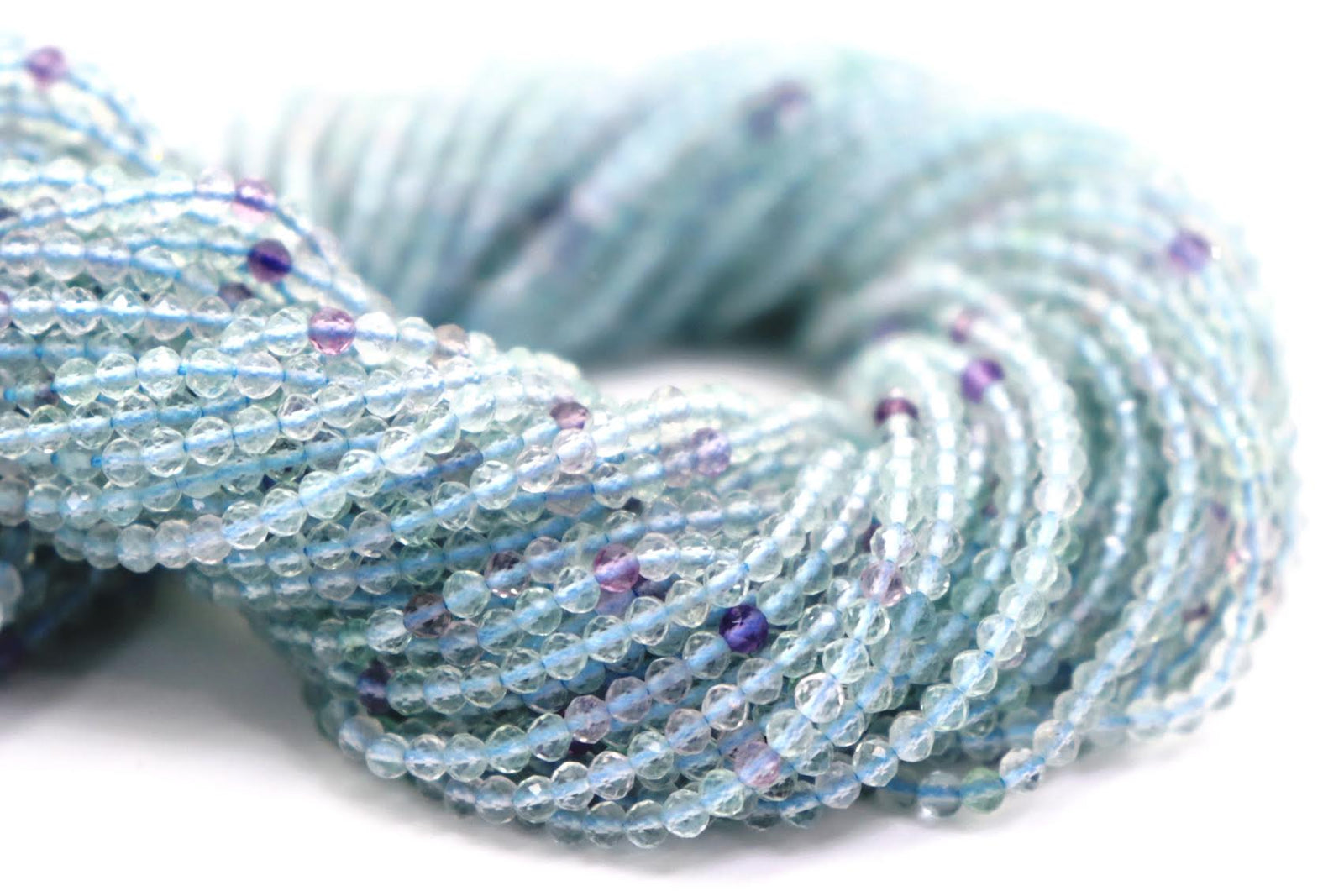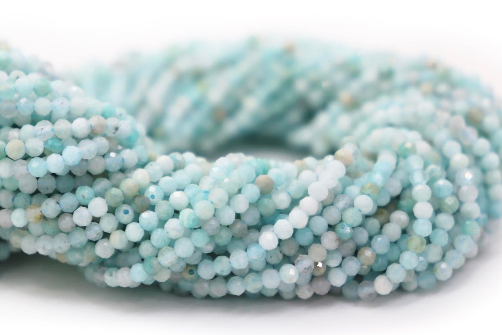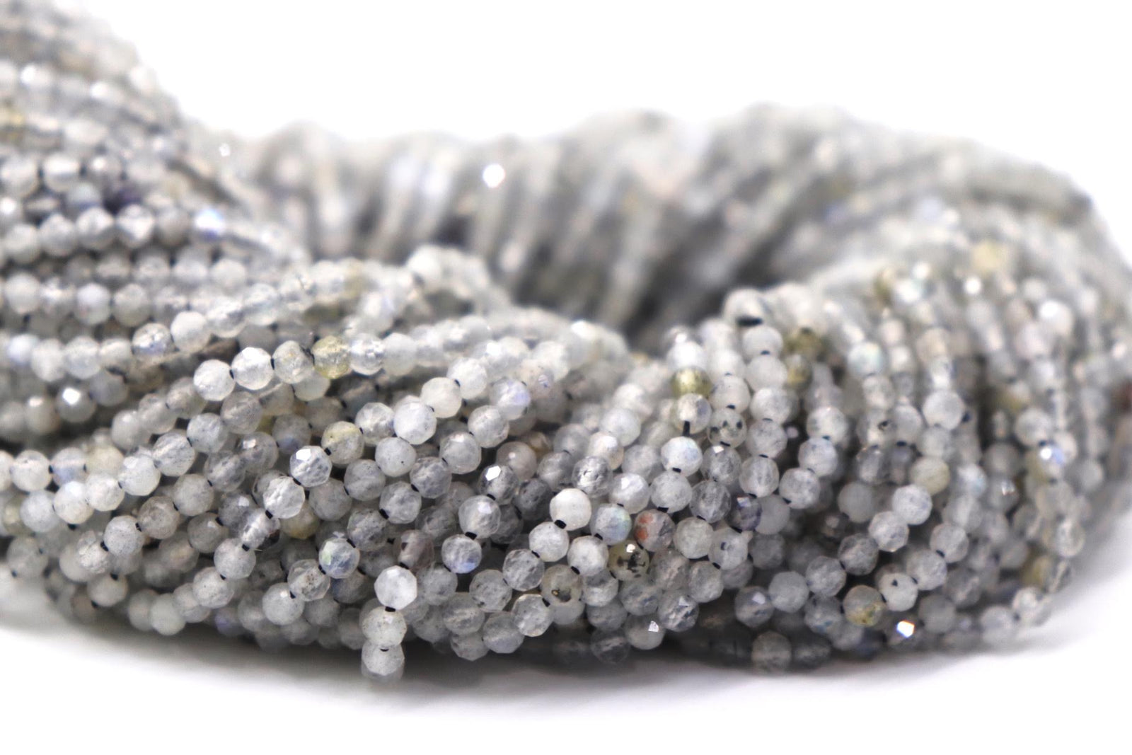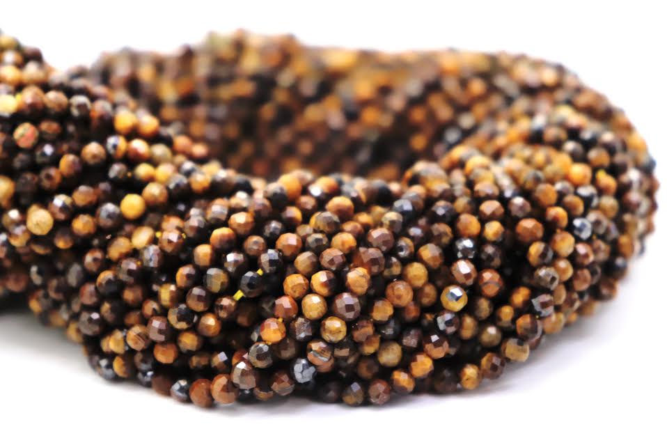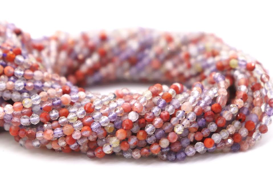 Micro-faceted beads are small beads cut with numerous tiny facets that enhance their ability to reflect light, creating a sparkling effect.