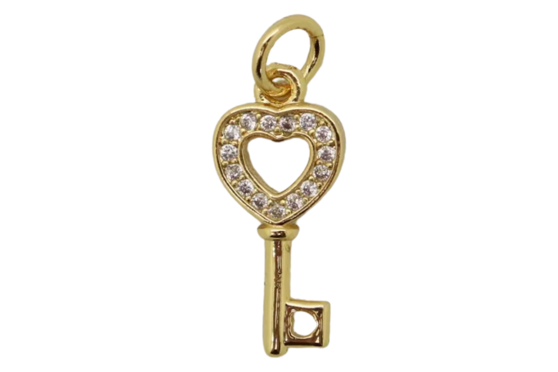 Elevate your jewelry designs with this exquisite Key Charm, crafted from premium 18 kt gold plating that delivers lasting brilliance and sophistication. The refined finish resists tarnishing, ensuring your creations maintain their lustrous appeal through years of wear.