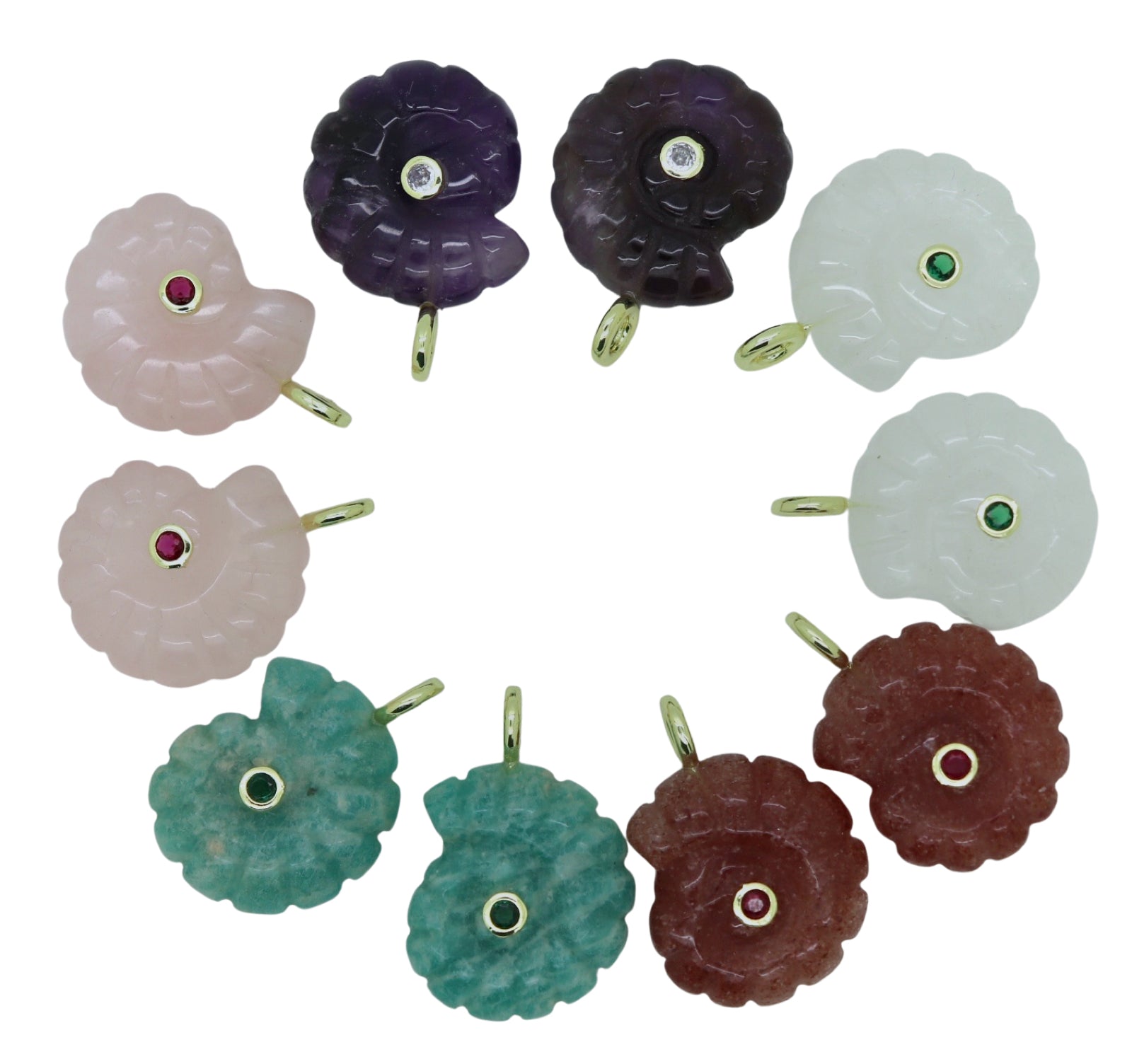 This Shell stone charm showcases a refined blend of natural elegance and expert craftsmanship. Its smooth, polished surface highlights the stone’s unique color and texture, making it a versatile accent for necklaces, bracelets, or earrings.